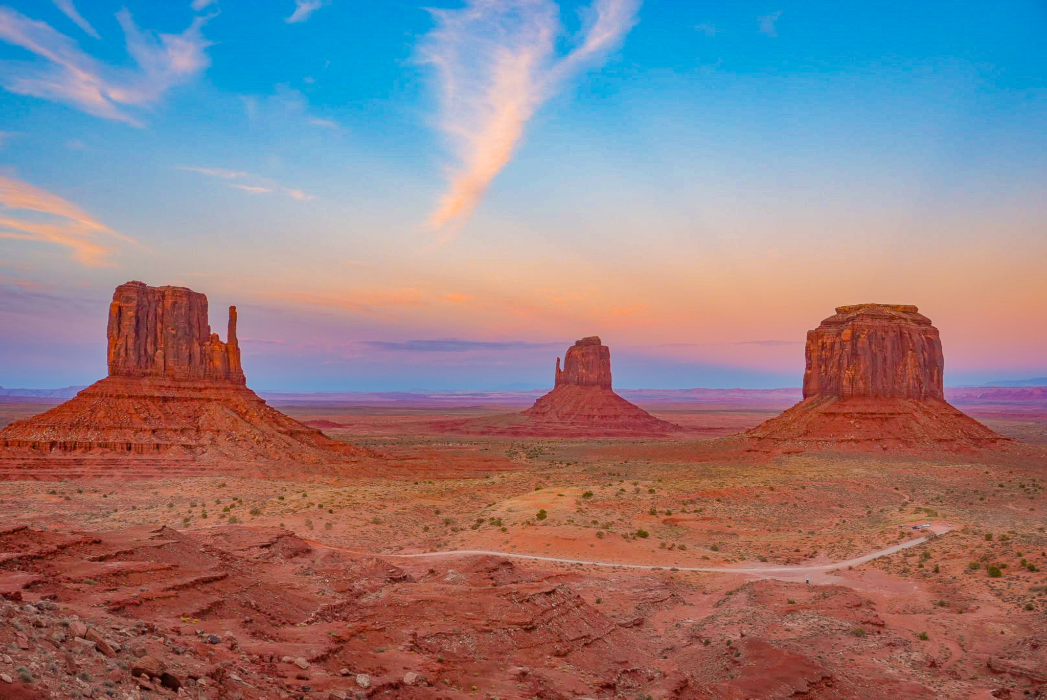 If you don't get a chance to see it today, don't worry you'll have more opportunities tomorrow, but it can also be nice to catch it at both 🌅 sunset and 🌅 sunrise as the light casts differently. Be conscious of which way you're facing/ driving - at sunset you'll want to face west and you'll see the sun illuminating behind. At sunrise you'll want to face east. The visitor's centre overlook is a great place to view Monument Valley at these times.